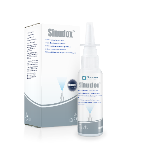 Sinudox? is a solution intended for nasal irrigation. For self administration to penetrate, clear and clean the nasal passages and sinus. Ancillary substances sodium hypochlorite and hypochlorous acid may have a local antimicrobial effect. Sinudox? is suitable for use on mucous membranes.