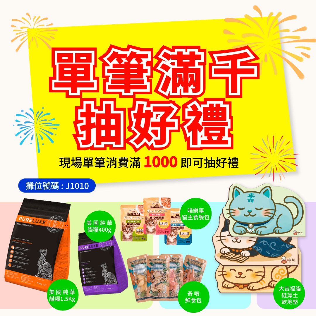帶家中貓貓來Union汝欣攤位K427梳梳毛發(fā)限動合照可抽獎1次,有機會獲得正產(chǎn)品!