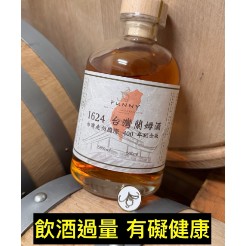 Funny Distillery<br/>Taiwan’s first international-grade urban craft distillery, a pioneer of creative spirits.<br/>Our vision: “To add a touch of Taiwan to the world of international spirits” — crafting distinctive Taiwanese Rum and Whisky.<br/>Help fun people, do fun things, craft fun spirits, and let the world shout FUN!<br/><br/>Crafted 100% in Taiwan with:<br/>Taiwanese cane molasses + Taiwanese distillers + Taiwanese distillery (100% MIT, Made in Taiwan!)<br/><br/>? Nose: Signature high-ester rum aromas of bubblegum and tropical fruits<br/>? Palate: Rich cane sugar, grass jelly, shaved ice — evoking the soul of Taiwanese nostalgia<br/>? Finish: Vanilla, jasmine, pineapple, smoked plum, even a roasted tea note reminiscent of aged whisky<br/><br/>🛠 Craftsmanship & Flavor Connections | A masterpiece from an international distilling team!<br/>🥃 Fermentation with Taiwan Sugar molasses – layers of brown sugar, bubblegum, and dark sugar <br/>🥃 Unique yeast – Funny yeast creates pollen-like floral notes and fruity acidity <br/>🥃 Modified Lomond still, double distillation – extracting defined aromas and rich oily textures<br/>🥃 Maturation in new American oak, C2 (medium toast) & C3 (heavy toast) casks – vanilla, nuts, dried fruits, smoked plum, and condensed milk accents<br/>🥃 Expert blending – building deep complexity with both international quality and true Taiwanese character<br/>🥃 500ml |💥 58% ABV<br/><br/>“1624 Taiwan Rum” — a tribute to traditional rum lovers, showcasing Funny Distillery’s solid foundations.