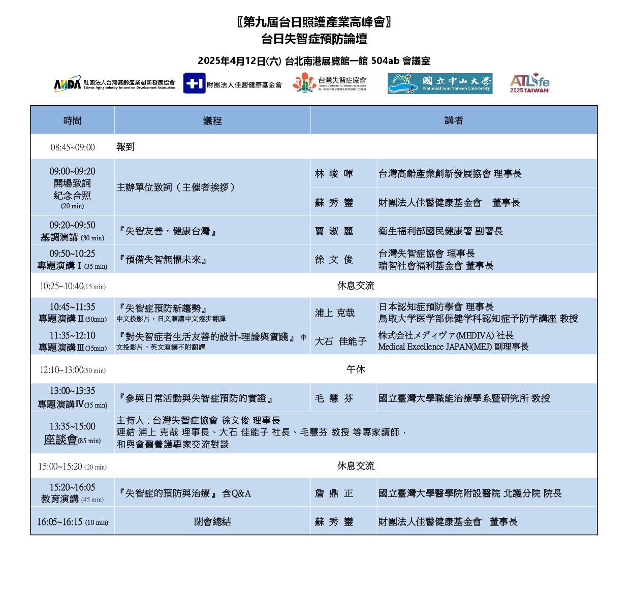 政策與產(chǎn)業(yè)論壇 〖第九屆臺日照護(hù)產(chǎn)業(yè)高峰會(huì)〗 臺日失智癥預(yù)防論壇