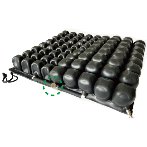 【調(diào)整容易】充洩閥轉(zhuǎn)動(dòng)處有長(zhǎng)6mm交叉斜紋設(shè)計(jì),易於手握來(lái)調(diào)整座墊氣室的軟硬度。