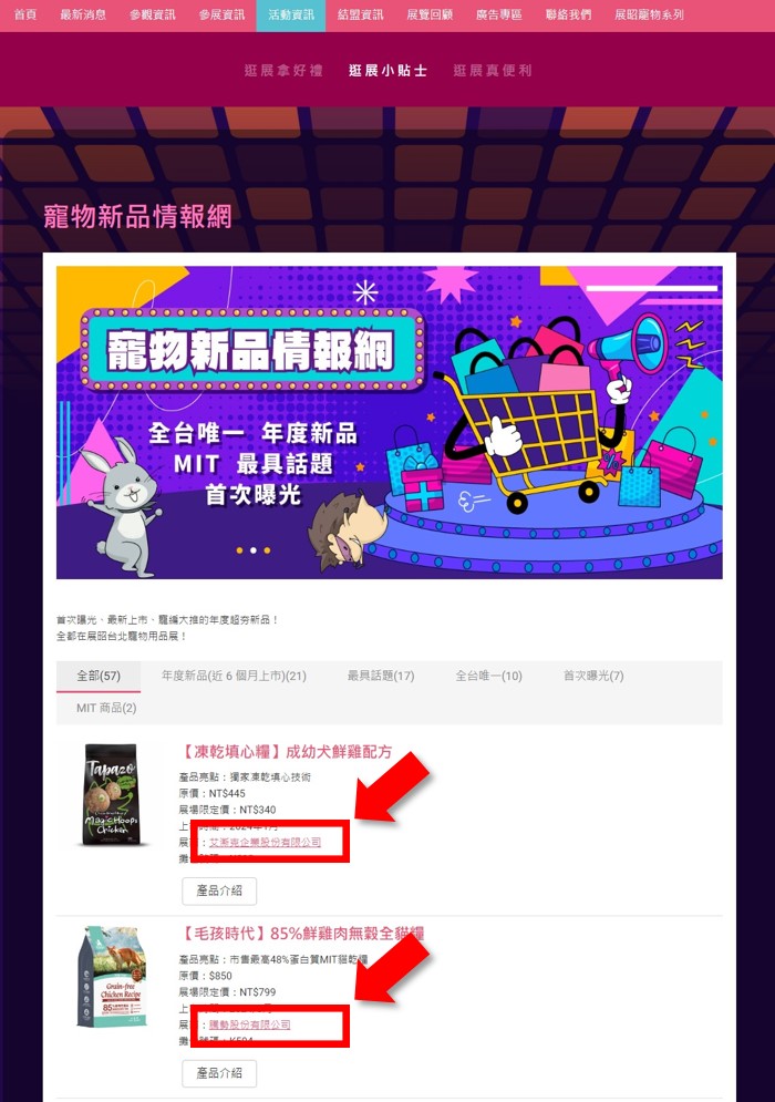- 進入【2024 展昭臺北寵物用品展-經(jīng)典場】官網(wǎng)>活動資訊>逛展3重奏>逛展小貼士> 寵物新品情報網(wǎng)