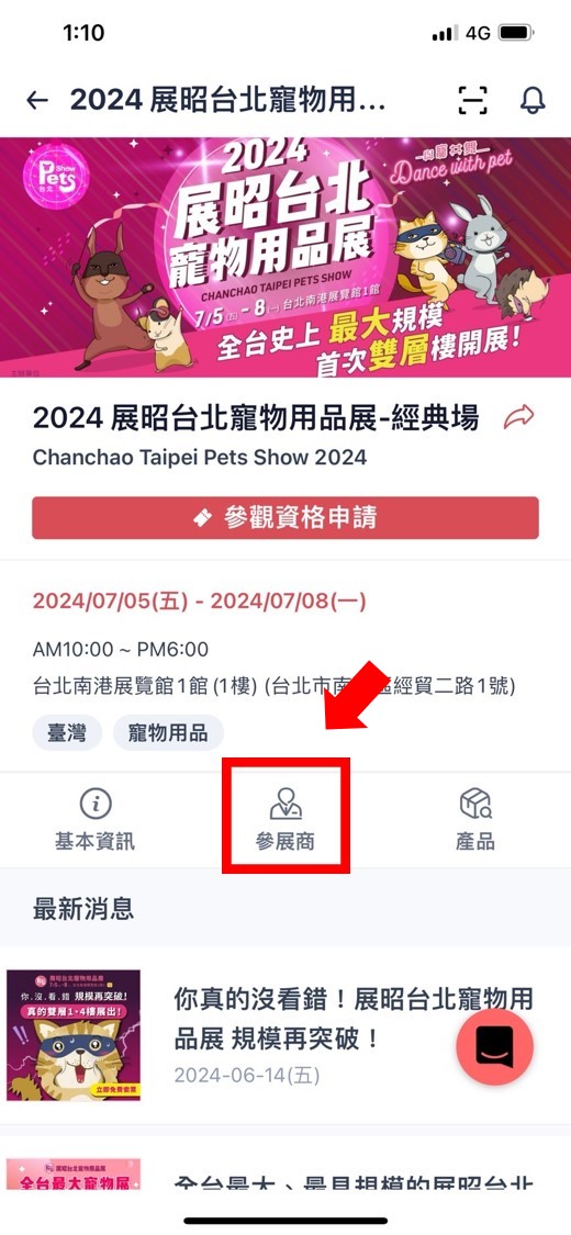 - 進入【展昭展覽APP】>點擊【2024 展昭臺北寵物用品展-經(jīng)典場】
