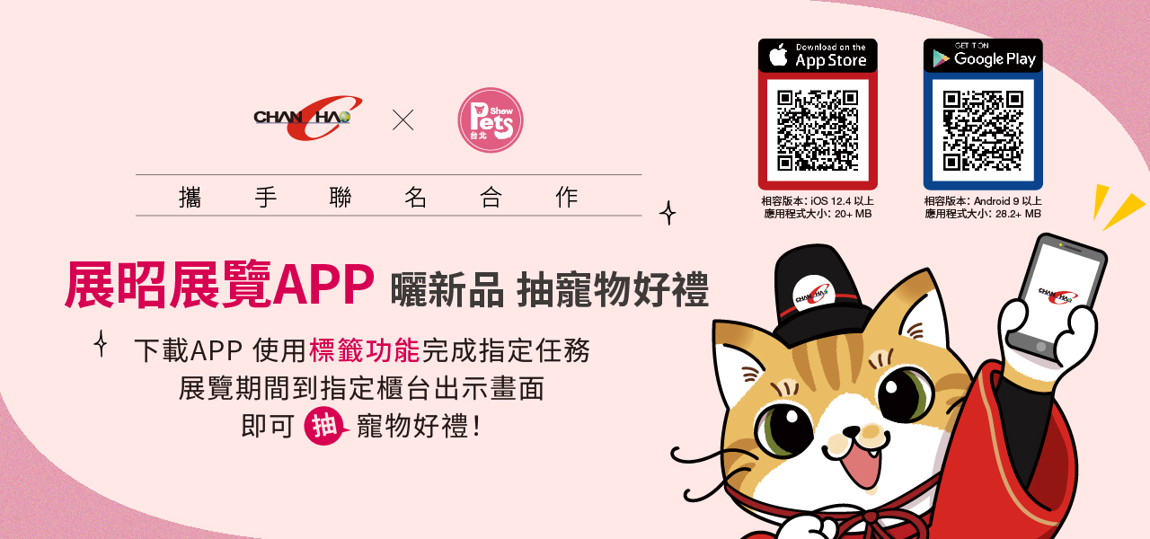 此次「展昭臺北寵物用品展」首次雙層樓開展,規(guī)模創(chuàng)歷屆之最,同時與【展昭展覽APP】攜手合作,只要在APP上使用「標籤功能」完成指定任務(wù), 於展覽期間(7/5-8)至指定櫃臺出示畫面,審核通過後即可參加寵物好禮抽獎!