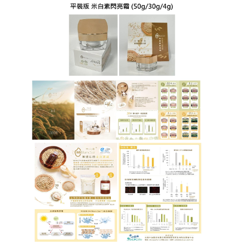 利用中油生技開發(fā)之米白素(MïBlancSol®)打造成護(hù)膚品:米白素閃亮霜/露套組。其中,米白素閃亮霜經(jīng)人體試驗(yàn)證實(shí),28天內(nèi)可以改善皮膚暗沉(色澤提升2.3%)、保水力(水分提升6.1%)、淡化細(xì)紋(皺紋降低22.4%)、豐潤飽滿(膠原蛋白提升9.9%),呈現(xiàn)細(xì)胞試驗(yàn)外的實(shí)用效果。