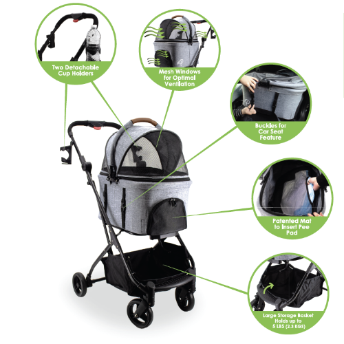 輕鬆變身為舒適的寵物提籃和安全的寵物汽車座椅,是毛孩子的終極旅行夥伴。