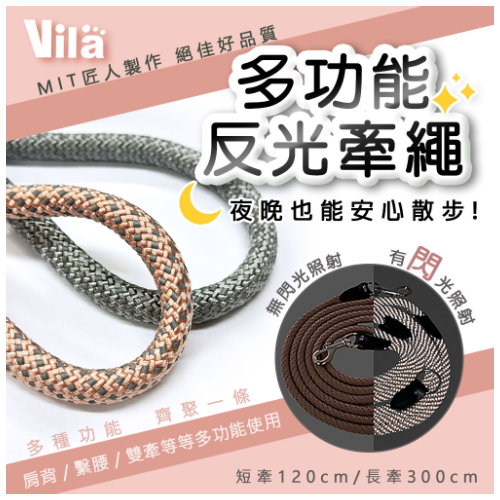 Vila多功能反光牽繩300cm/120cm