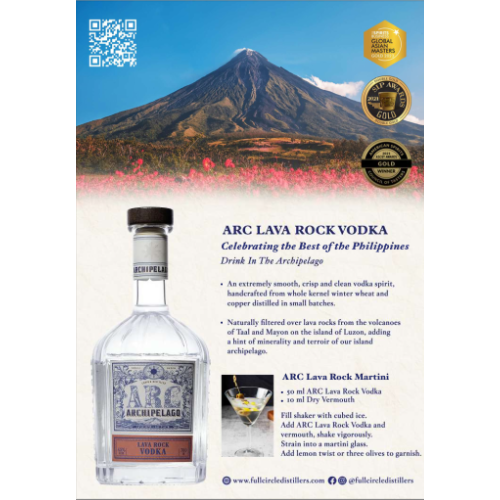 ARC Lava Rock Vodka: An extremely smooth and crisp spirit crafted from whole kernel French winter wheat and naturally filtered over lava rocks foraged from the volcanoes of Taal and Mayon. With a hint of minerality, Full Circle’s vodka is a celebration of the terroir of the Philippines. 700ml, 45% alc/vol.